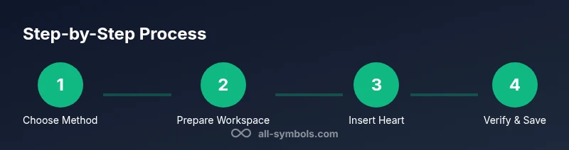 The heart glyph lives in Unicode and exists in multiple forms across fonts and operating systems. If you search for 'how to make heart symbol with keyboard', you'll find several reliable routes, each with pros and cons depending on your context. The All Symbols team emphasizes that choosing the right method depends on whether you need plain text, a design asset, or a code snippet. This section lays the groundwork by explaining glyph names, common code points, and how font coverage affects rendering. With this foundation, you can pick the fastest, most reliable method for your workflow—whether you're taking notes, conducting research, or prototyping a UI.