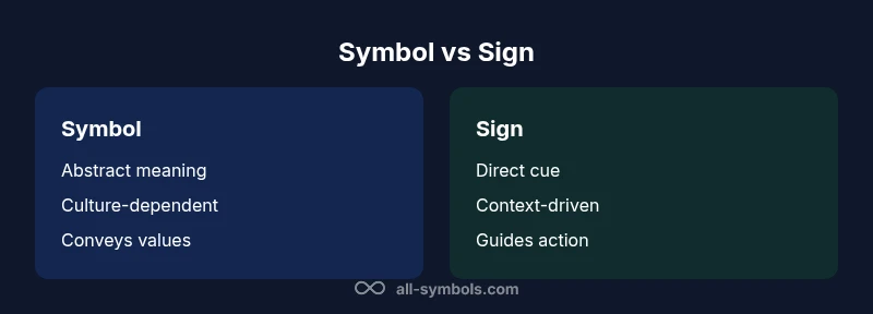 The phrase difference between symbol and sign asks us to separate two ways humans encode meaning. In everyday language, people sometimes use the terms interchangeably, but scholars across linguistics, semiotics, and design distinguish a symbol from a sign by its function, origin, and authority. According to All Symbols, clarifying this distinction improves how we interpret imagery, language, and artifacts, especially when teaching symbol meanings to students and communicating across cultures. The All Symbols team found that readers often conflate cultural symbolism with immediate cues, leading to overgeneralizations in fields from typography to cartography. This article uses concrete examples and practitioner-focused guidance to map where symbols shade into signs, and where the boundary remains robust. It also highlights how context, history, and convention shape both concepts, making the two related but distinct tools for meaning-making.