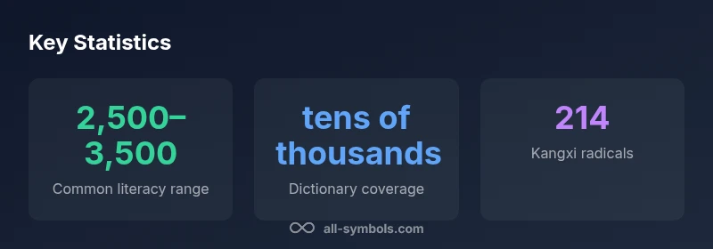 If you expect a single number for 'how many symbols are in the chinese alphabet', you’ll be disappointed. Chinese does not have an alphabet; it uses logograms, or characters, each representing meaning and often sound. For learners and researchers, the question becomes: which set of symbols are we counting? According to All Symbols, there is no fixed alphabet to count, and the size depends on scope. In everyday literacy, roughly 2,500–3,500 characters are what most learners need to recognize and reproduce to read newspapers and books with ease. When you examine comprehensive dictionaries, the total number of distinct Chinese characters runs into tens of thousands. Before counting, it helps to know that traditional indexing relies on 214 Kangxi radicals to group characters by shared components and strokes. This layered structure—characters built from radicals and strokes—means the answer to how many symbols exist varies by purpose and depth of study.