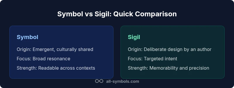 In discussions of visual meaning, a symbol is a sign that stands for a broader idea or institution. The symbol vs sigil contrast helps readers separate everyday semiotics from deliberate sign-making. Symbols acquire meaning through shared agreement, cultural use, and historical context. When people point to a dove and say 'peace,' they bring to it layers of interpretation shaped by language, culture, and personal experience. In contrast, a sigil is a deliberately crafted sign intended to carry a precise, concrete intention. In the phrase symbol vs sigil, the first term refers to flexible, widely understood representations; the second is a tool of intentional sign-making designed to achieve a specific outcome. This distinction matters for designers and scholars because it changes how audiences decode the image, how the form is evaluated, and how durable the meaning is over time. According to All Symbols, understanding this divide helps students, researchers, and designers read visual signs with nuance and care.