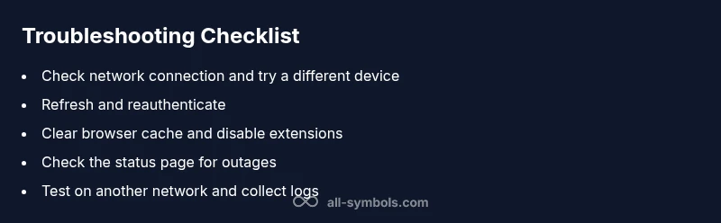Follow a proven sequence that starts with quick checks and ends with contacting support if needed. Step by step: 1) Verify network stability and time settings; 2) Sign out, clear cache, and reauthenticate; 3) Disable extensions and try incognito mode; 4) Test on another device/network; 5) Check the status page for outages; 6) If unresolved, collect logs and contact support.